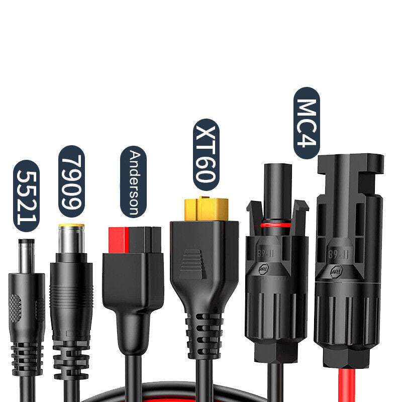 Alt du behøver er Electop 4-i-1 Solar Cable Splitter, som svarer til at have 4 forskellige solcelle opladningskabler, hvilket sparer dine penge og tid i høj grad. Den er kompatibel med anderson stik, DC 8 mm adapter, 5,5 mm x 2,5 mm (5,5 mm x 2,1 mm) DC strømstik og xt60 stik oplader. Opfyld dine behov for opladning af forskellige solcellegeneratorer bærbare kraftværker på samme tid.