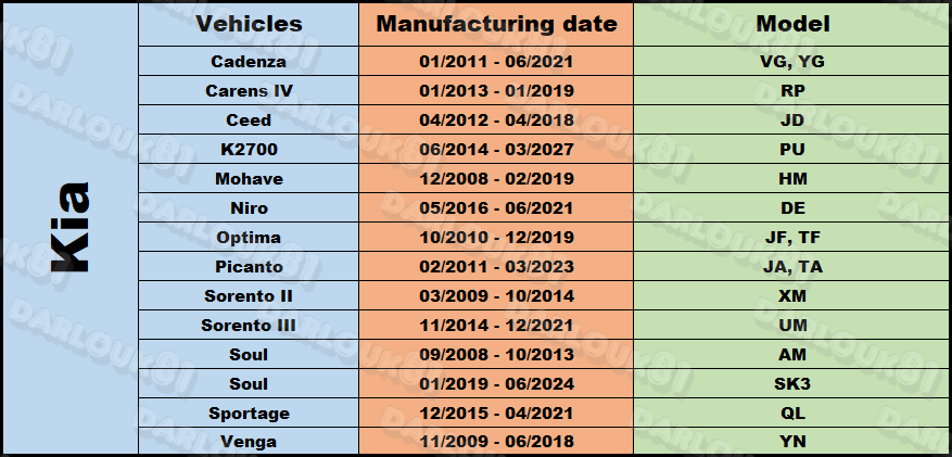 4 x tyre pressure sensor valve stem service kit TPMS for Kia Sportage Picanto