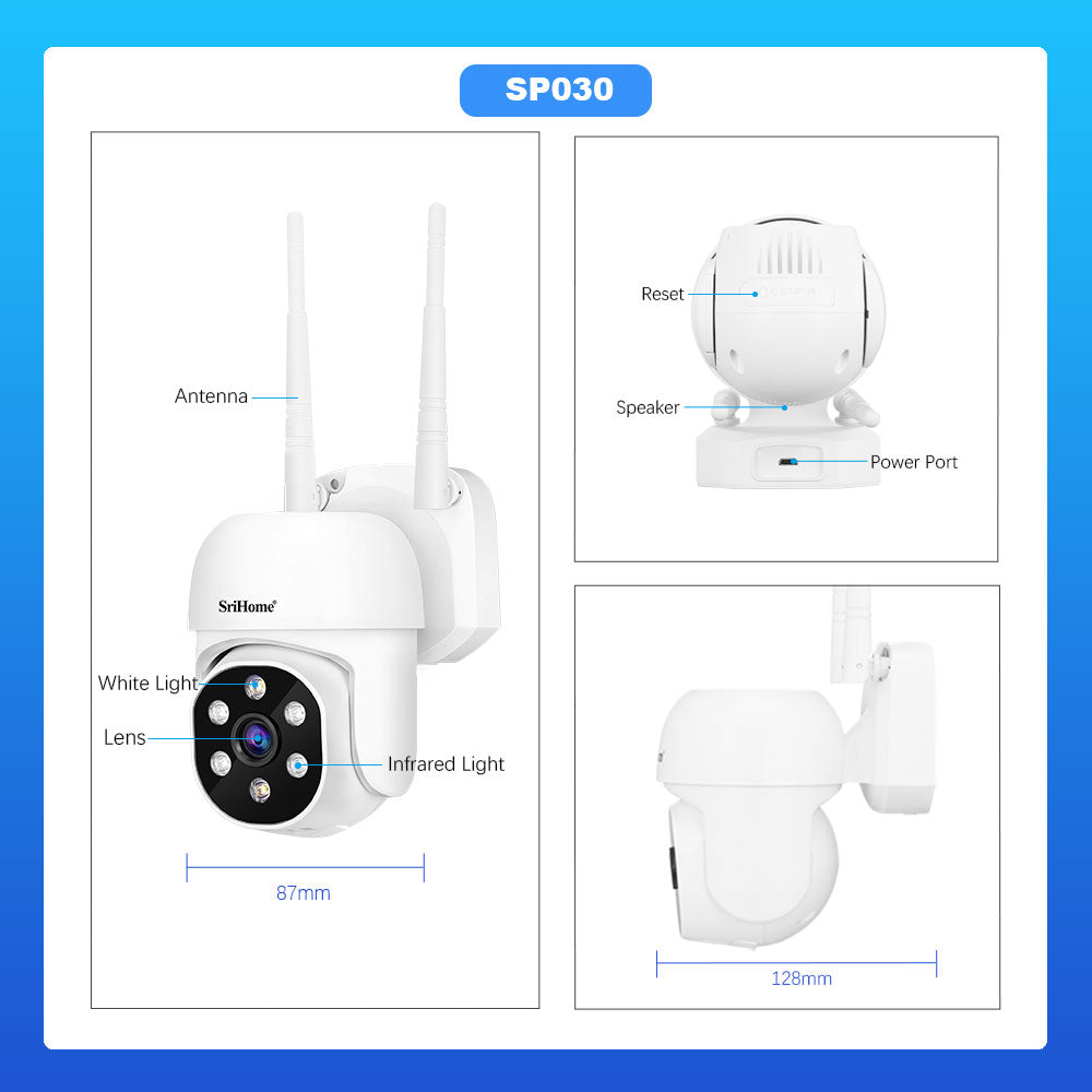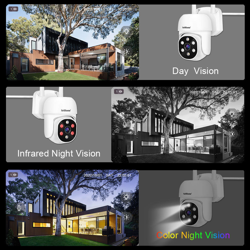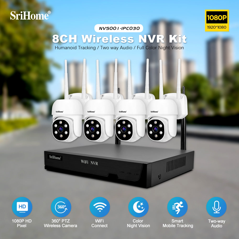 6CH Srihome NVS001-IPC030 HD 2MP,1080P(1920 x1080),H.264 Indbygget mikrofon og højttaler