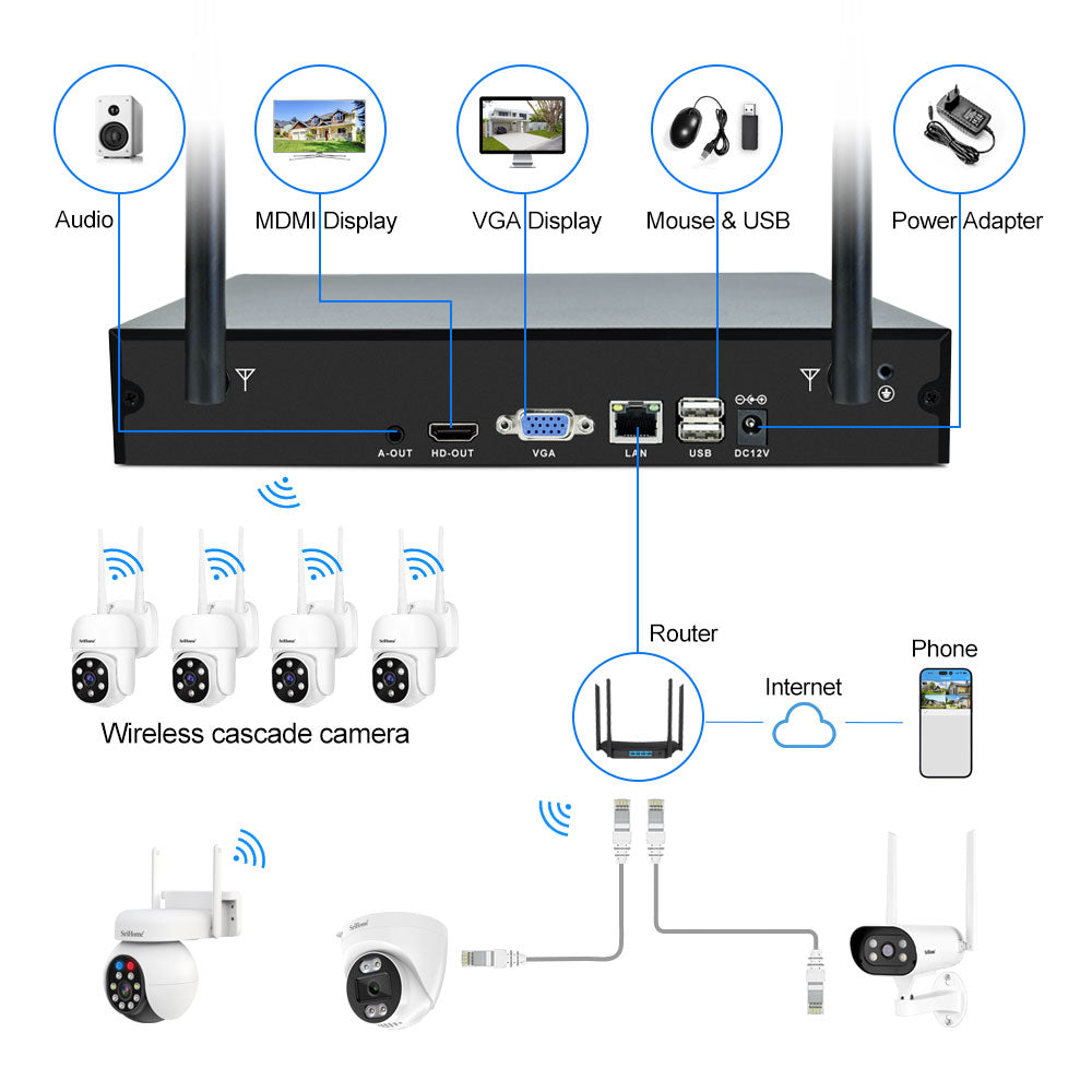 6CH Srihome NVS001-IPC030 HD 2MP,1080P(1920 x1080),H.264 Indbygget mikrofon og højttaler med 6 kameraer