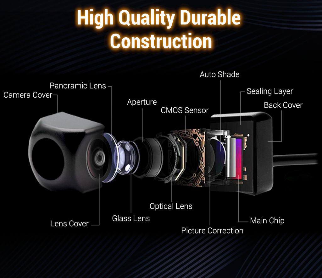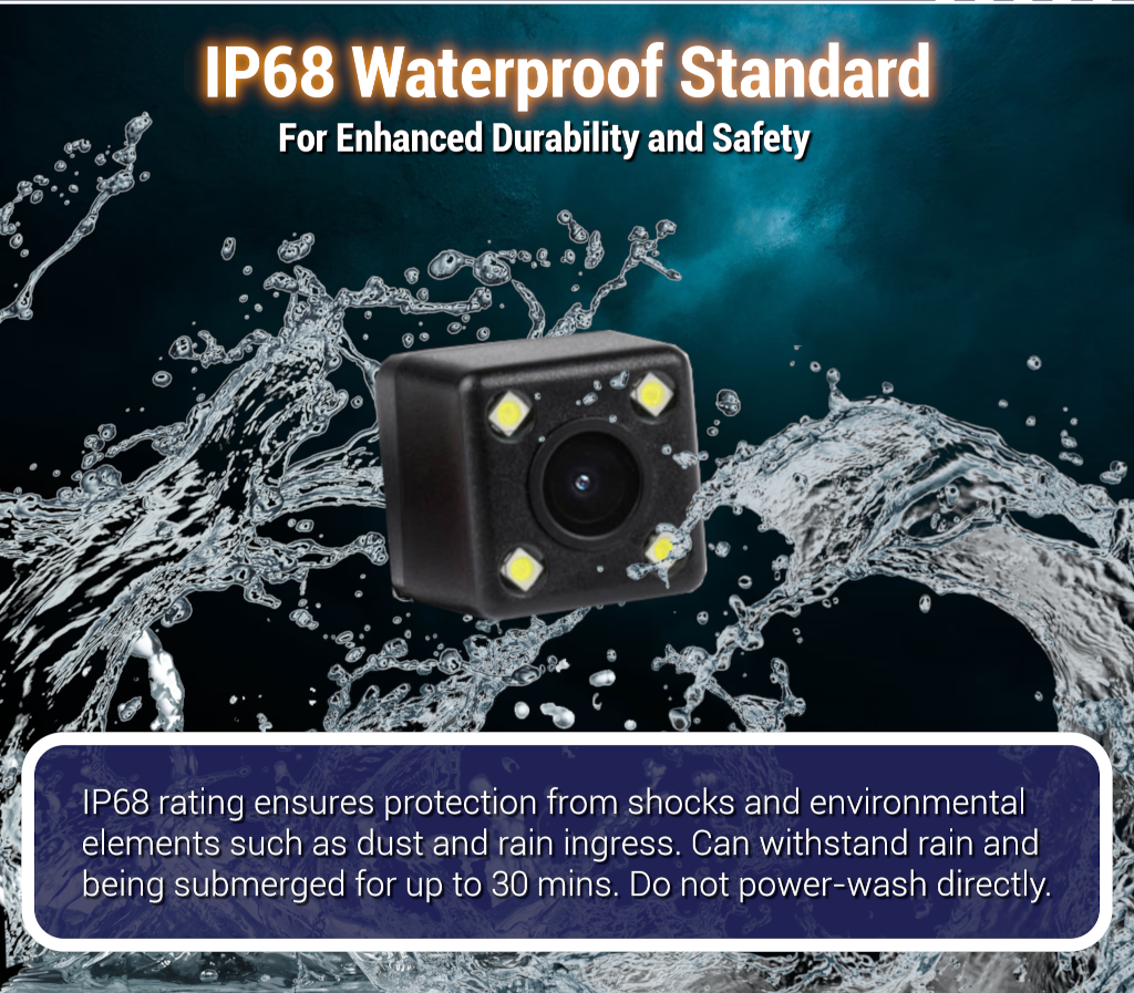 Ud over enestående billedkvalitet har kameraet integreret LED-lys, der oplyser omgivelserne, selv under dårlige lysforhold. De strategisk placerede LED'er giver forbedret synlighed, hvilket sikrer, at du har et klart overblik over dine omgivelser uanset tidspunktet på dagen. Ikke længere at kæmpe for at se, hvad der er bag dig i svagt oplyste områder eller under natlige manøvrer.