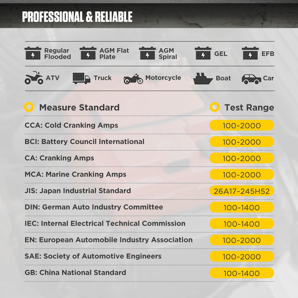 CCA: Cold Cranking Amps 100-2000