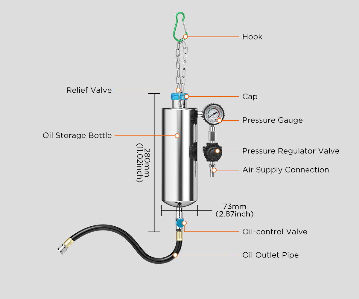 Tilslutnings måden er den samme, bare juster trykket på luftkilden 1-5PSI.