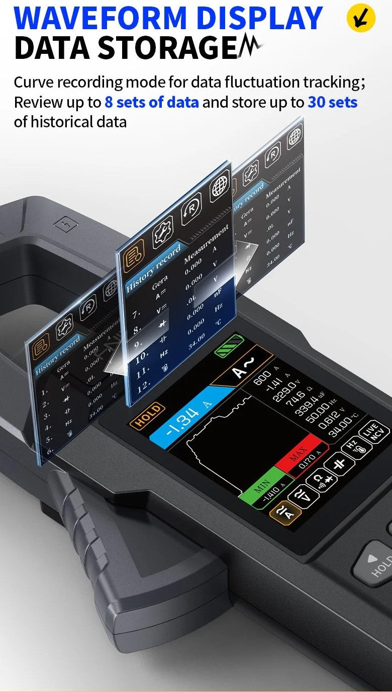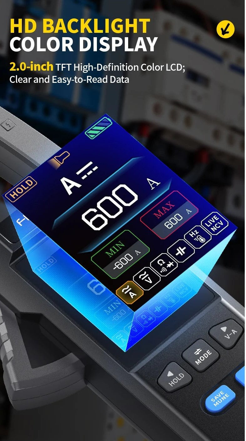 • Højpræcisions måling: 10.000 tæller True RMS intelligent klemmemåler til nøjagtige aflæsninger.