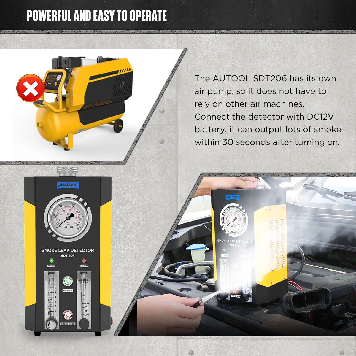 AUTOOL SDT206 bil røg lækage detektor er et professionelt auto rør lækage detektor værktøj. Det vil hjælpe os med at placere bilers motorcykler lækage på rør systemerne hurtigt og præcist