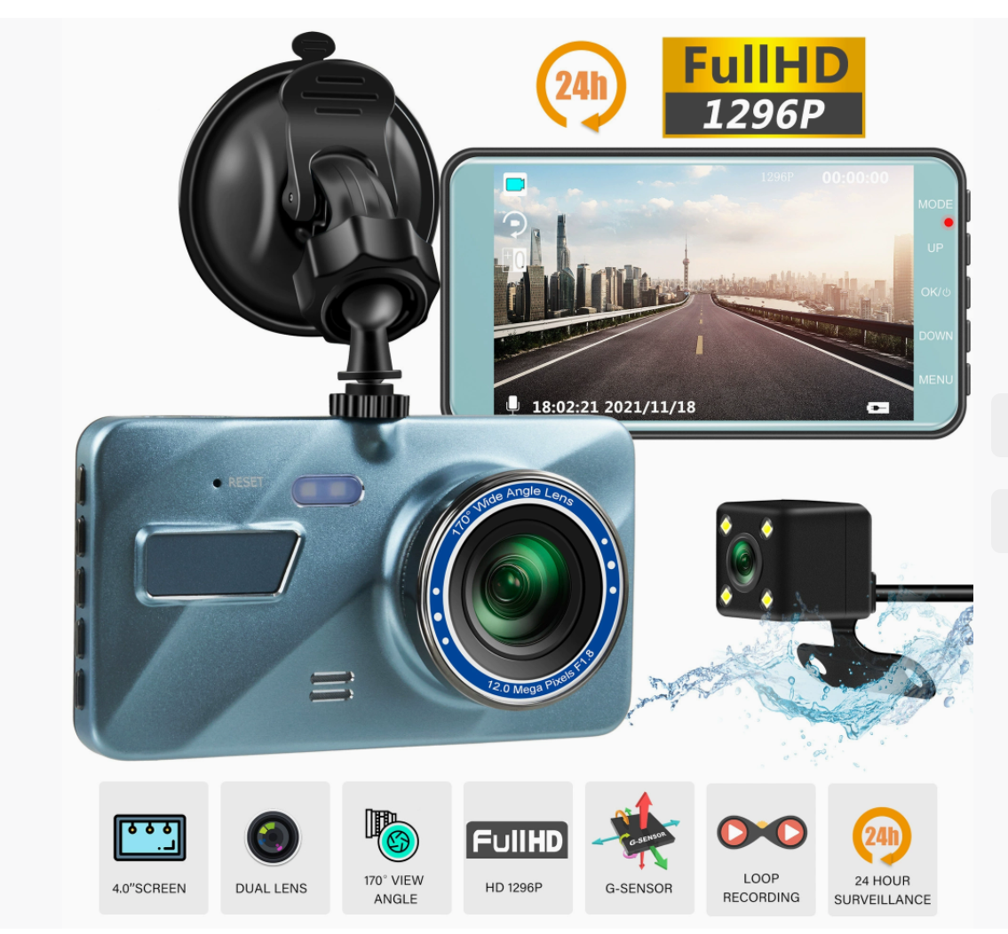 HD 1080P 4'' Car DVR Dual Lens Dash Cam Video Camera Recorder Night Vision