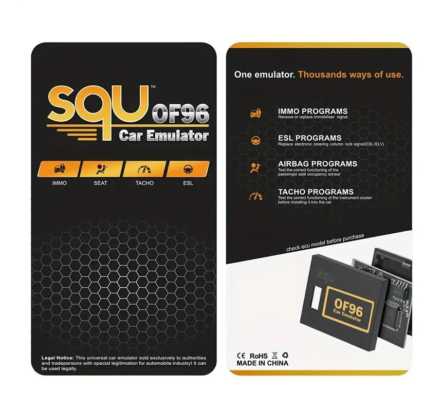 SQU OF96 Universal Car Emulator understøtter IMMO/Sædebelægningssensor/Tacho/ESL-programmer.