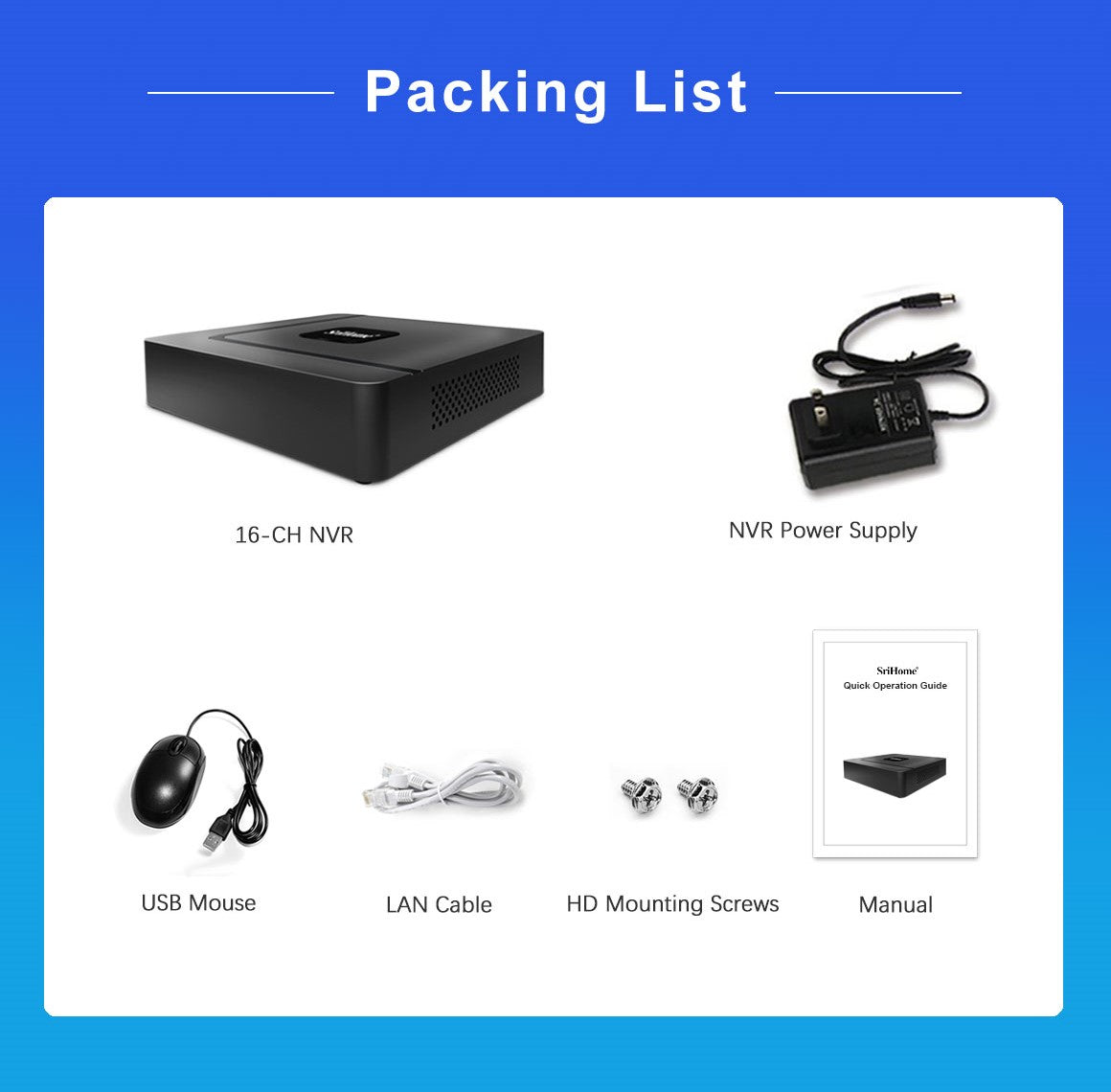 SRIHOME NVS003 4K UHD CCTV NVR 16CH 5MP NETWORK VIDEO RECORDER 8CH 8MP SECURITY SURVEILLANCE IP CAMERA