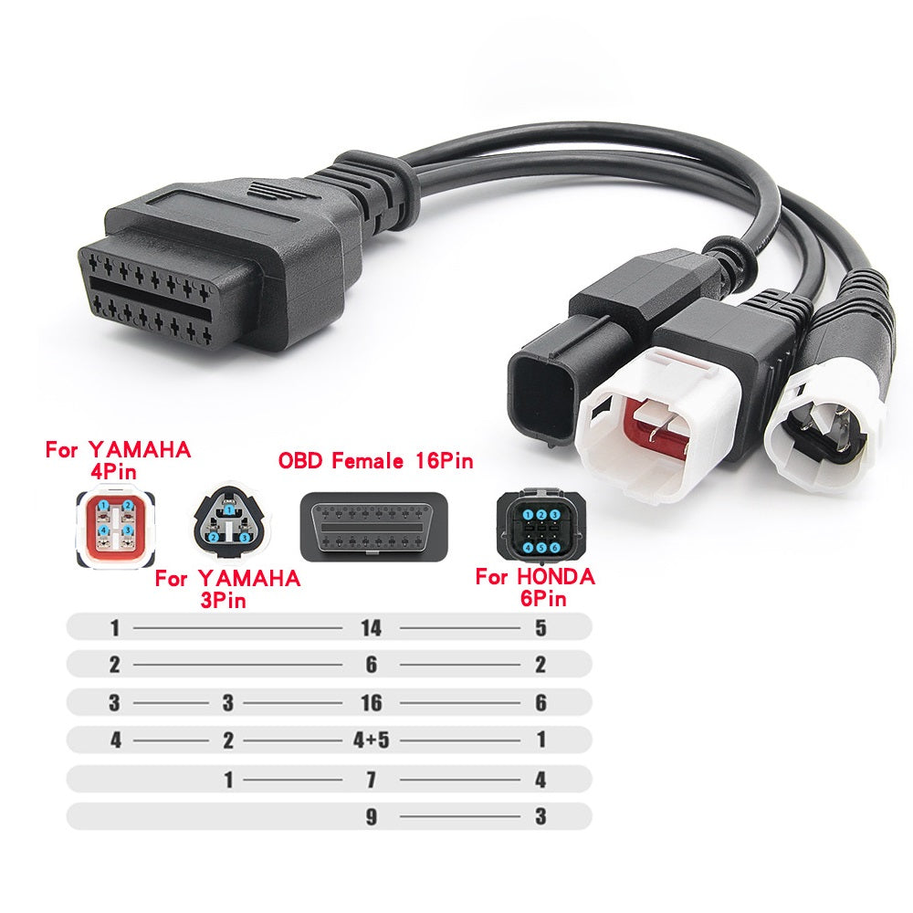 For Yamaha Motorcycle 3 + 4 pin & 6 pin honda to OBDII 16 pin combined cable